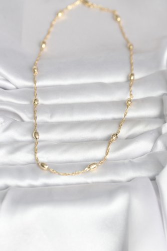 • CM 14K Gold Renk Burgu Zincirli Damla Topçuk Model 45 cm Kadın Kolye